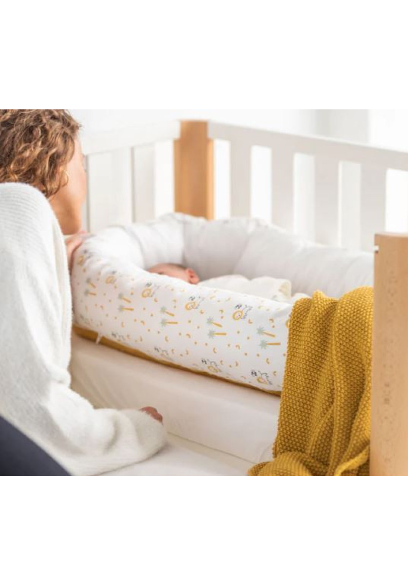 Gracias a sus cremalleras, es desenfundable y desmontable para facilitar su lavado. Es ideal para un colecho con tranquilidad. Se puede usar como reductor para la cuna o como cambiador. Abriendo el Velcro® se adapta al crecimiento de tu bebé, por lo que lo podrás usar más tiempo.
