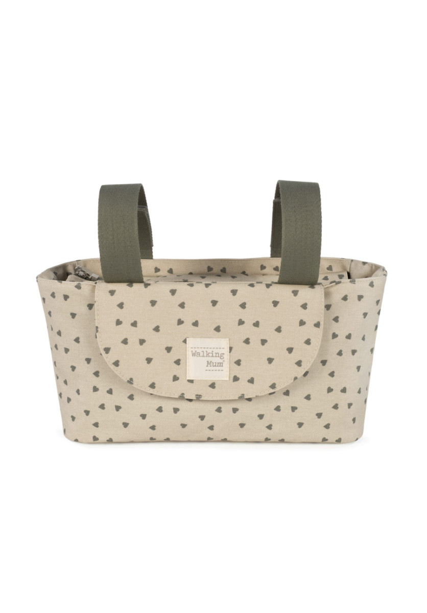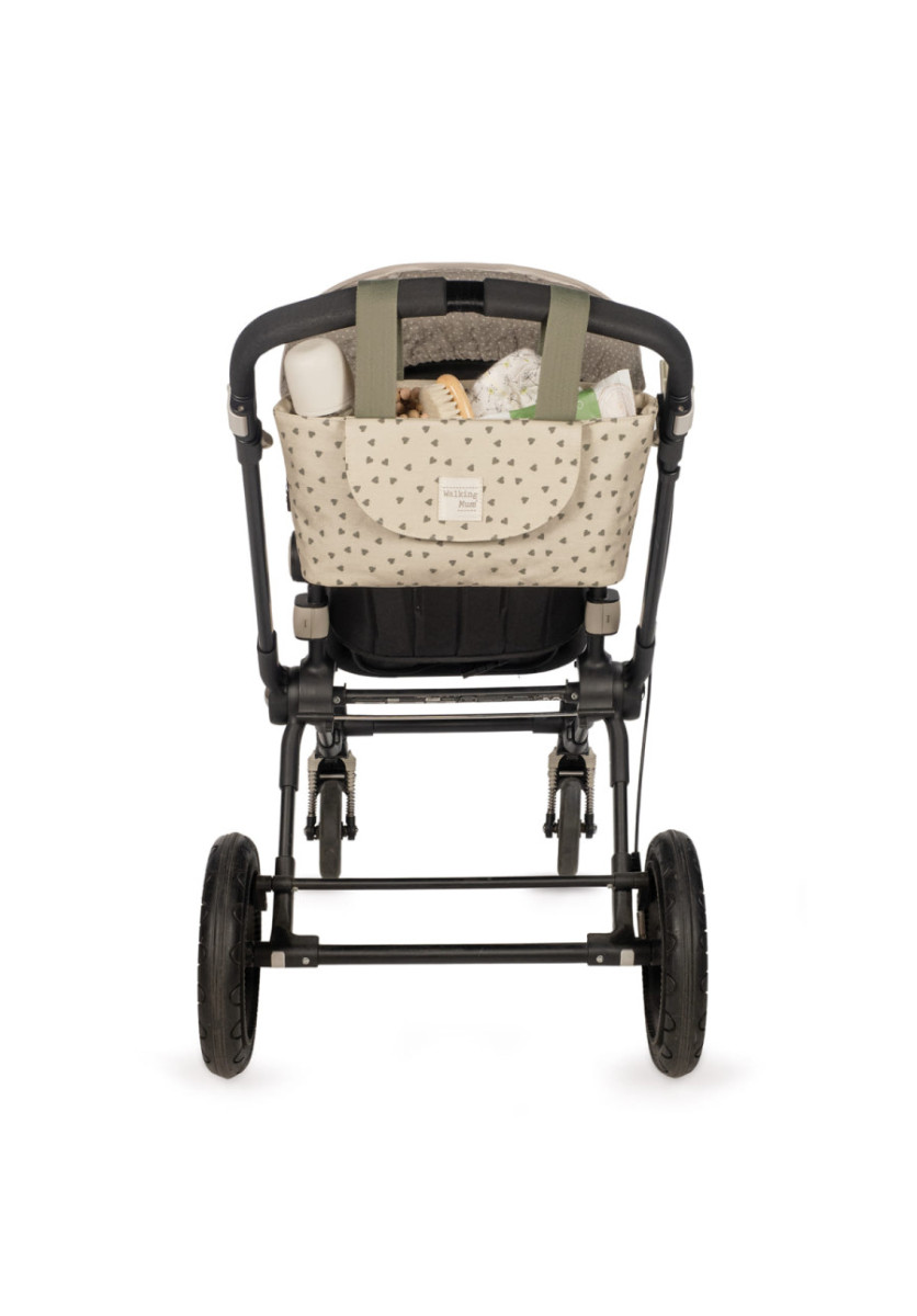 El bolso organizador Poppy Musgo con corazones para silla de paseo es un modelo muy ligero además de ser resistente y espacioso para que puedas llevar todo lo que podrías necesitar durante el paseo de tu bebé. Aparte de la gran capacidad que tiene, está distribuido para facilitarte la organización, con varios bolsillos exteriores e interiores que te ayudarán a colocar todos tus complementos ordenados y así puedes ubicarlos más fácil cuando vayas a usarlos. Su diseño moderno y casual lo hacen perfecto para usar a diario y combinar con tus looks casuales o deportivos. Incorpora asas cortas con las que puedes fijarla a cualquier modelo de silla de paseo. Gran calidad y mucho estilo. Fabricado en un material resistente y de fácil limpieza a mano o a máquina a 30 °C. Walking Mum protege a tu bebé utilizando los mejores tejidos, libres de colorantes azoicos y sustancias nocivas para la salud. Nuestra colección Walking Mum guarda toda la calidad de la marca Pasito a Pasito pero con un particular sello de estilo urbano y moderno que no pasa desapercibido, para vestir diferente los paseos con tu bebé. Las bolsas de maternidad de esta línea son más sport y prácticas, especialmente pensadas en mamás y papás modernos que aprecian los diseños más actuales y en tendencia sin dejar de lado la calidad y la funcionalidad de los accesorios que complementan y hacen más cómodos todos los paseos con sus bebés. Especificaciones: Materiales: 100 % algodón plastificado. Medidas: 31X17X12 cm.