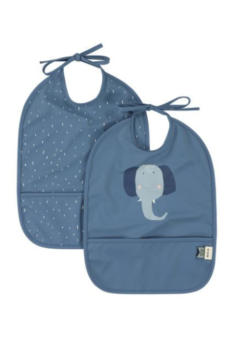¡Qué bien lo pasamos en la mesa con tu animal favorito! Este divertido juego de 2 baberos mantiene limpia la ropa del peque mientras disfruta de una rica comida, bebida o tentempié. El práctico bolsillo asegura que todo lo que se caiga quede bien recogido, evitando los grandes desastres. Viene con unos prácticos cordones de cierre que hacen se pueda ajustar a medida que el niño crece. Más buenas noticias: ¡el tejido está hecho de poliéster 100 % reciclado y es impermeable! Es fácil de limpiar y ahorra mucho tiempo de lavado o limpieza.Materiales recubrimiento revestimiento de poliuretano - tela: 100% PES reciclado Recomendación de edad3m+ \r\n\r\n