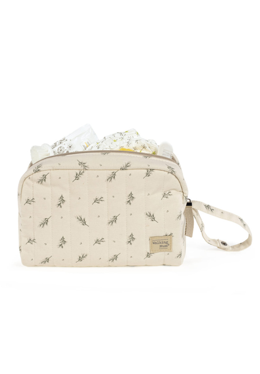 El neceser de bebé Mimosa Verde con estampado floral es un bolso especialmente pensado para llevar todos los productos de aseo de nuestra niña o niño al salir de casa. Es un modelo con mucho estilo para adecuarse a lo que necesitas. Su diseño simple y cómodo de forma rectangular ofrece comodidad para transportar todos los artículos de aseo de tu bebé que por ser tan pequeños a veces se pierden dentro del bolso canastilla y aquí puedes tenerlos todos ordenados y siempre a mano. Tiene un cierre seguro de cremallera para evitar que algo pueda salirse. Gran calidad y mucho estilo. De fácil limpieza a mano o a máquina a 30 °C. Walking Mum protege a tu bebé utilizando los mejores tejidos, libres de colorantes azoicos y sustancias nocivas para la salud. Nuestra colección Walking Mum está diseñada con un particular sello de estilo urbano y moderno que no pasa desapercibido, para vestir diferente los paseos con tu bebé. Los accesorios de esta línea son más sport y prácticos, especialmente pensadas en mamás modernas que aprecian los diseños más actuales y en tendencia sin dejar de lado la calidad y la funcionalidad de complementos que hacen más cómodos todos los paseos con sus bebés. Especificaciones: Materiales: 100% algodón. Medidas: 23X10X15 cm.