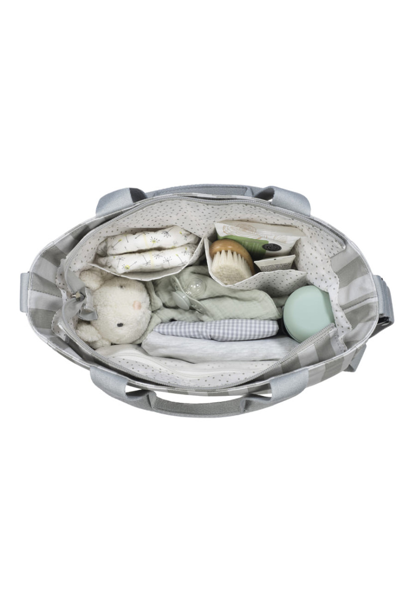 Bolso cambiador Sintra de raya verde para silla de paseo que incluye cambiador para bebe. Bolsa canastilla muy ligera, resistente y de gran capacidad para llevar todo lo necesario para el paseo del bebe. Incluye un cambiador a juego con el bolso de maternidad. Tiene multiples bolsillos para poder tener todo ordenado. En el interior incopora un bolsillo plastificado para la ropa húmeda, un bolsillo térmico para biberones y dos bolsillos para lo que necesites tener más a mano. Incluye un charm en forma de corazón donde puedes bordar el nombre de tu bebé para personalizar el bolso. El bolso incluye 2 asas cortas ajustables que facilitan la colocación en cualquier modelo de silla de paseo. También incorpora una asa larga para poder colgarla en el hombro y dos asas cortas para llevarla en la mano. Gran calidad y mucho estilo. Fabricada en un material resistente y de fácil limpieza. Walking Mum protege a tu bebé utilizando los mejores tejidos, libres de colorantes azoicos y sustancias nocivas para la salud. Nuestra colección Walking Mum guarda toda la calidad de la marca Pasito a Pasito pero con un particular sello de estilo urbano y moderno que no pasa desapercibido, para vestir diferente los paseos con tu bebé. Las bolsas de maternidad de esta línea son más sport y prácticas, especialmente pensadas en mamás y papás modernos que aprecian los diseños más actuales y en tendencia sin dejar de lado la calidad y la funcionalidad de los accesorios que complementan y hacen más cómodos todos los paseos con sus bebés. Especificaciones: Materiales: 65% algodón / 35% poliéster plastificado. Medidas: 32x33x13 cm.