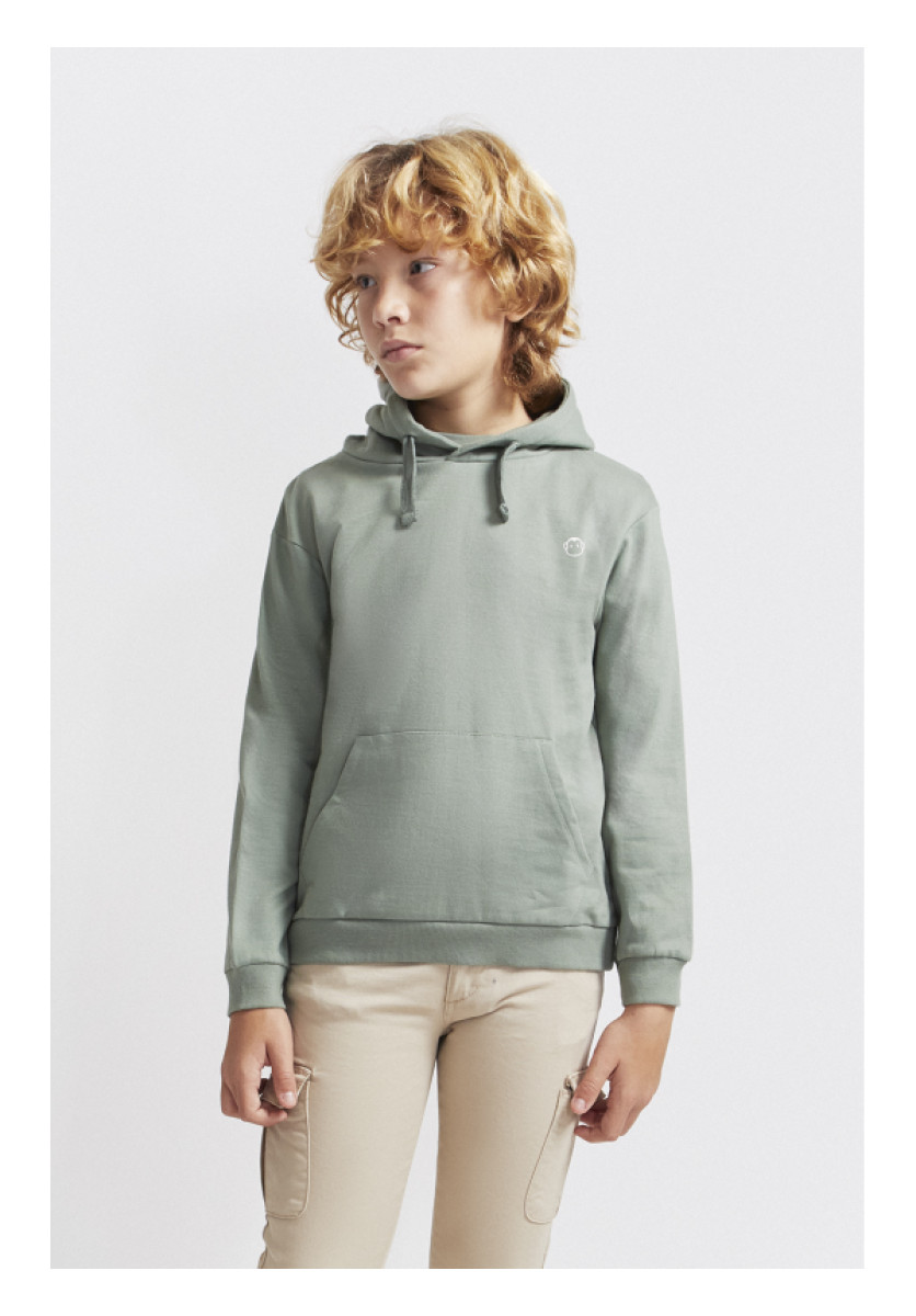 Sudadera de diseño cómodo de felpa suave, con bolsillo tipo canguro en la parte delantera, capucha con cordones decorativos y puños y bajo elásticos para un ajuste confortable. El detalle de una pequeña silueta de mono en el pecho añade un toque discreto al frontal, mientras que la parte trasera luce un estampado llamativo de monopatín con el mensaje “Skateboard Good Vibes” en tonos blanco, mostaza y tierra. Una sudadera práctica y moderna, perfecta para acompañar sus aventuras de invierno.