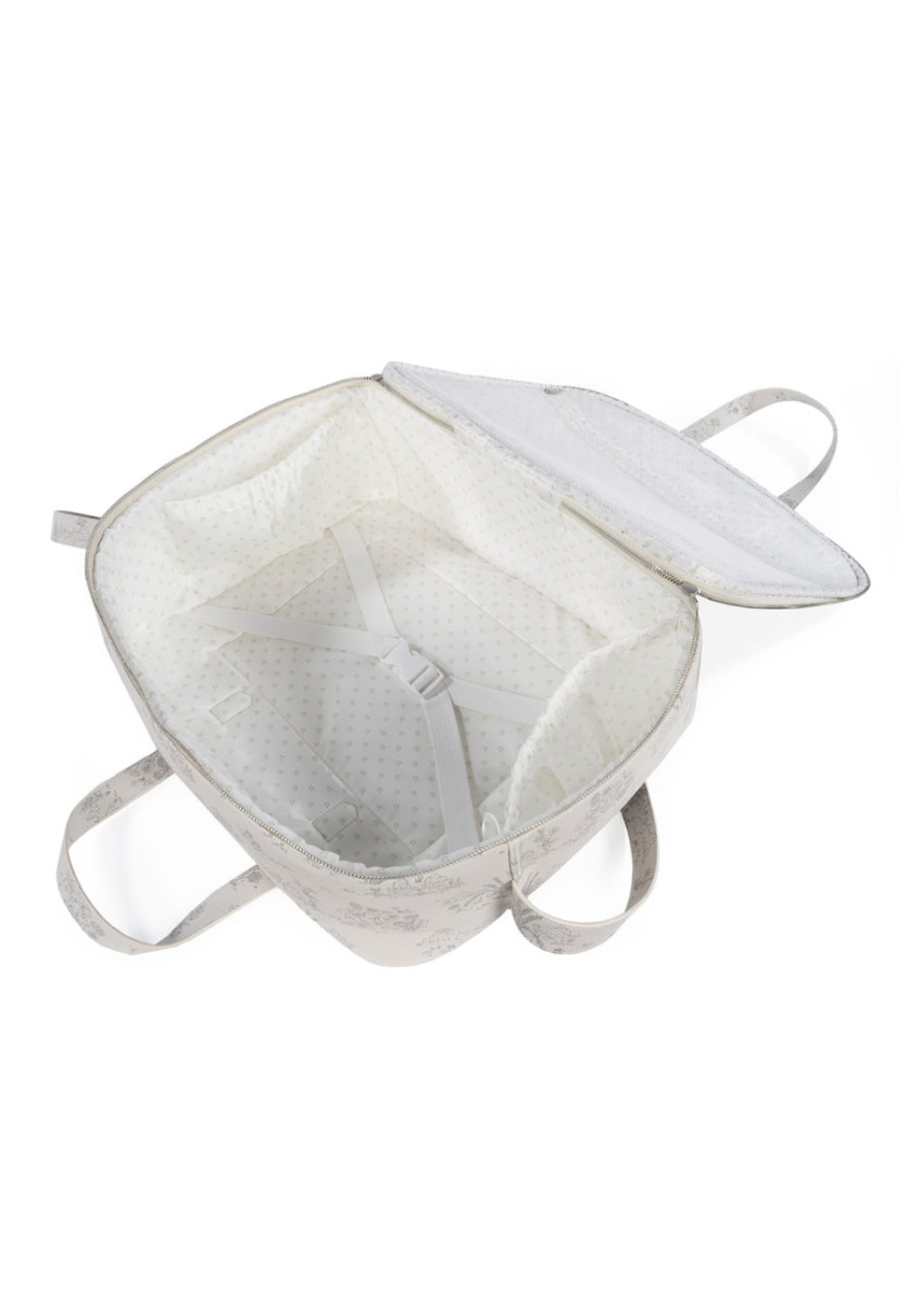 La maleta de bebé Toile de Jouy Cream de Pasito a pasito es la bolsa perfecta para el hospital/clínica, un modelo único con mucho estilo especialmente pensada para que puedas llevar todo lo que necesitas para ti, el papá y el bebé. Está elaborada en resistente y suave polipiel impresa. Su forma rectangular que brinda comodidad para tener cubiertas todas tus necesidades (mudas o accesorios) durante el día del nacimiento del bebé. Es un diseño simple, moderno y práctico que ofrece gran capacidad para llevar muchas cosas y es de práctica apertura para facilitar la búsqueda de lo que sea que hayas guardado. Viene acondicionada con un asa larga para colgar en el hombro y y dos asas cortas para llevar en la mano si lo prefieres. Acabados de calidad. La maleta de hospital cuenta con un forro interior con gomas para sujetar la ropita y se cierra de forma segura con cremallera de dos lados que permiten abrir la tapa completamente. Fabricada con materiales de gran calidad, libres de colorantes azoicos, ftalatos y sustancias nocivas para la salud. Además se puede lavar a mano o a máquina a temperatura de hasta 30º. Los productos para bebé de Pasito a Pasito cuentan con un diseño muy diferente a todas las demás. Sus colecciones se caracterizan por el trabajo al detallada, pensadas siempre desde un punto de vista práctico. Utilizan materiales de primera calidad para remarcar la elegancia y la armonía en cada una de sus piezas. Nuestros modelos son exclusivos y de estilo inconfundible, pensados en madres actuales que gozan de buen gusto y que aprecian los detalles tanto como nosotros. Especificaciones: Materiales: Eco-leather. Color: Cream. Medidas: 44X36X16 cm.