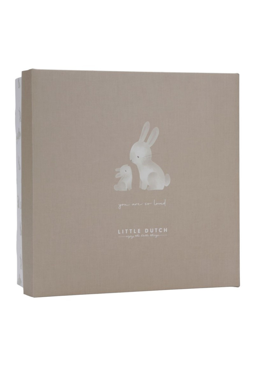 _La caja de regalo Baby Bunny de Little Dutch es el regalo perfecto para el pequeño que lo reciba. Este set contiene tres artículos irresistibles: el tierno conejo de peluche, el doudou con linda cabeza de conejo y el suave sonajero de anillo. El conejo de peluche ofrece comodidad y diversión, mientras que el doudou se convierte en el favorito para jugar y acurrucarse. El sonajero anular estimula los sentidos y la motricidad del bebé. Juntos forman un regalo amoroso y educativo, empaquetado en una hermosa caja de regalo.