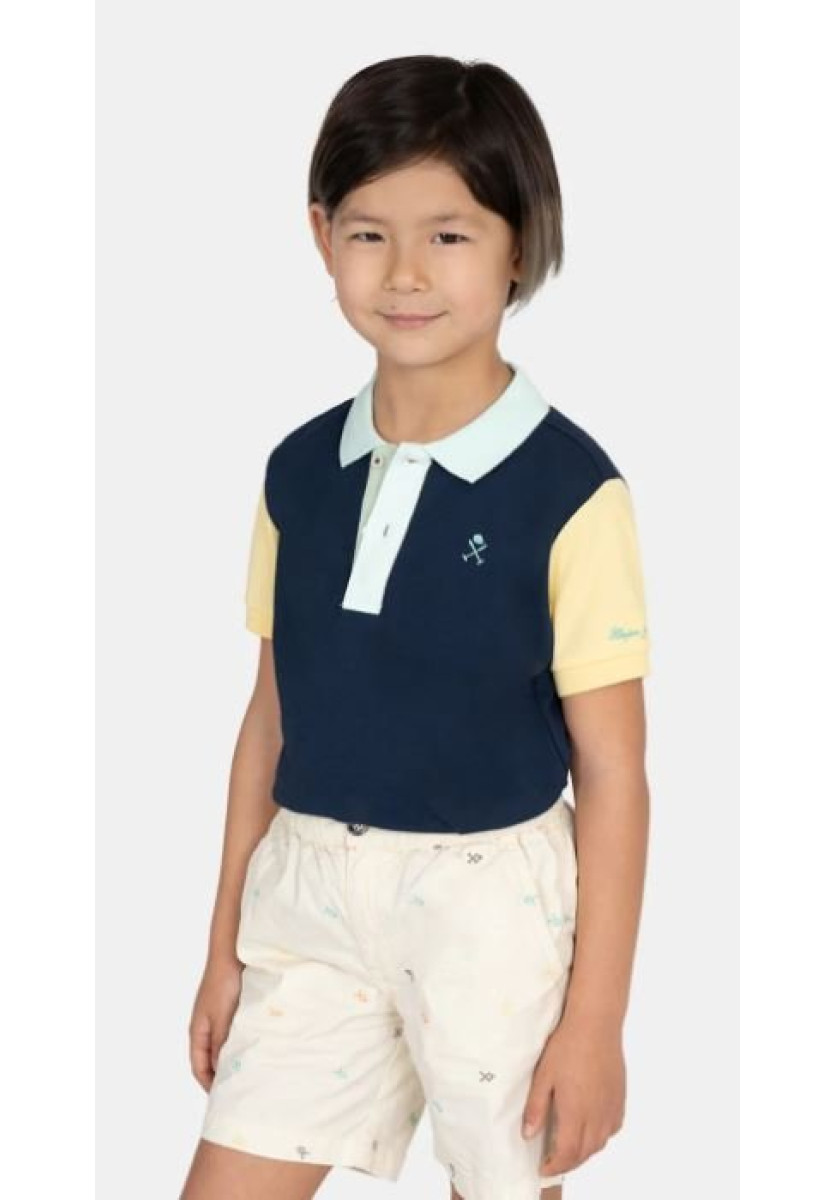 Polos m/c niño | Polo Preppy Kids Detalles que Importan • Tejido: Algodón 100%; tacto suave, transpirable y resistente al uso diario • Fit: Corte contemporáneo; pensado para el día a día urbano • Acabados: Cuello de canalé estructurado, tapeta de tres botones y bordado HandN de alta densidad Guía de Estilo Por dentro del chino con cinturón para el club. Cómodo y resistente para los más activos. El buen gusto se cultiva desde pequeño.
